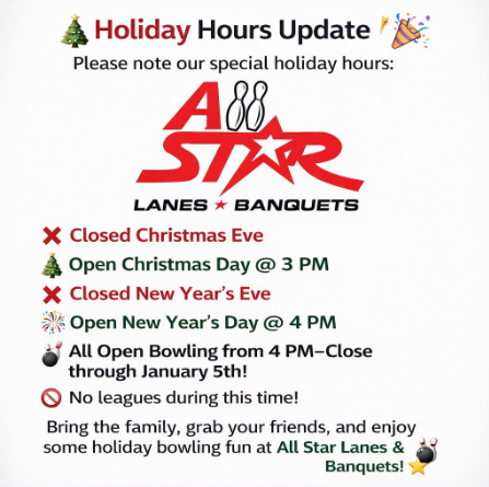 All Star welcomes walk-ins as well as reservations. Our Brunswick bowling lanes feature an automatic scoring system and utilize energy efficient pin-spotters.